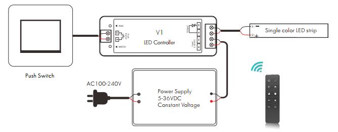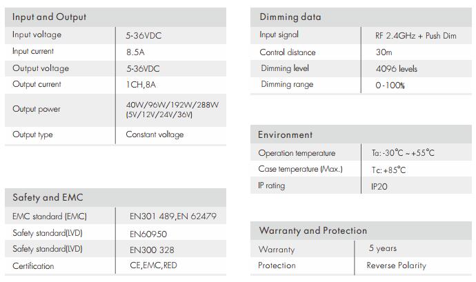 ● Long press (1-6s): Press and hold to step-less dimming, With every other long press, the light level goes to the opposite direction.